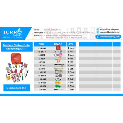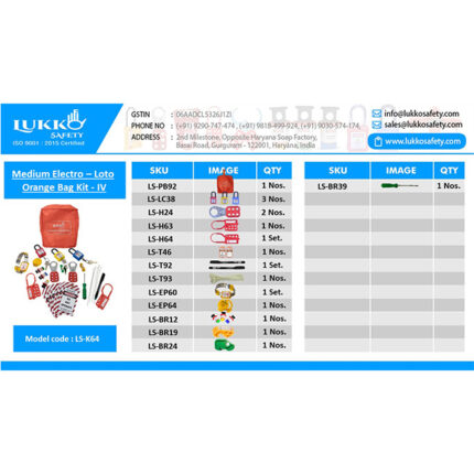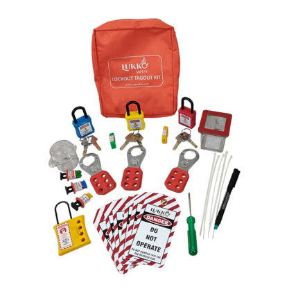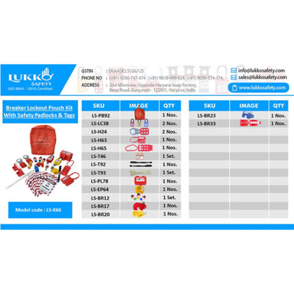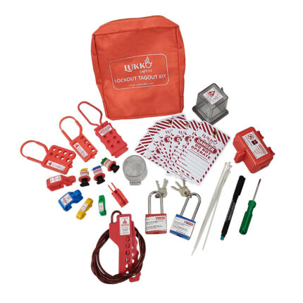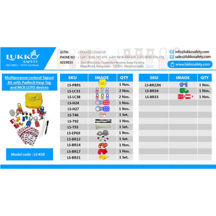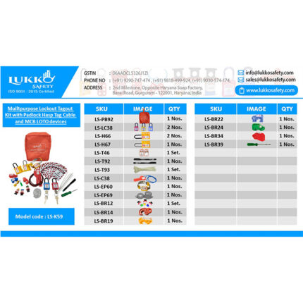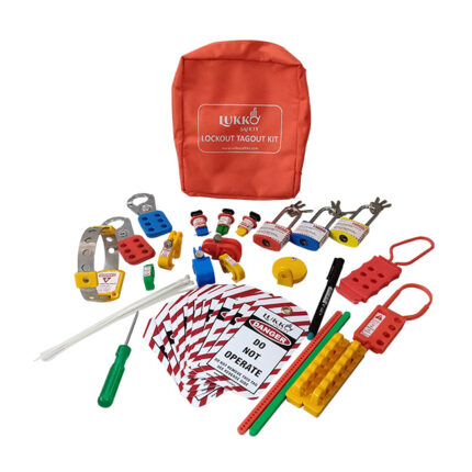 Muiltpurpose Lockout Tagout Kit with Padlock Hasp Tag Cable Panel and MCB LOTO devices Lockout Waist pouch + Electric Lockout.