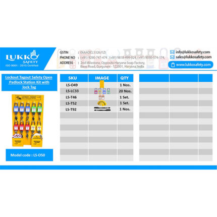 Lockout Tagout Safety Open Padlock Station - with material (20 OSHA Lock + Tag set + Pen)