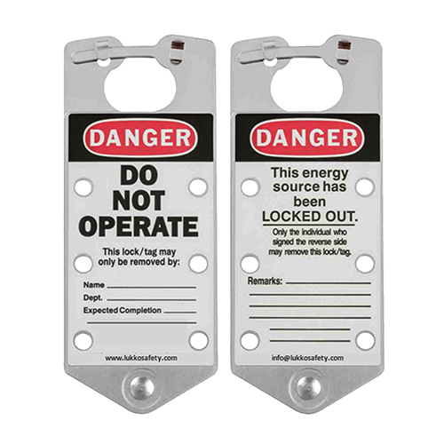 TAGO Labelled Lockout Hasp (Hasp + Standard Tag) with label & 6 locking holes, Aluminium base sheet