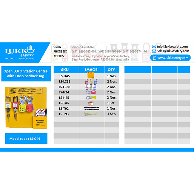 Open LOTO Station Centre – with material (4 OSHA Lock + 4 Hasp + Tag set +  Pen + Cable tie)