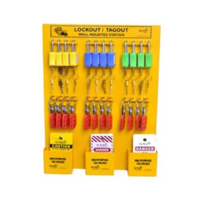 Lockout Station Hanging Board Center – with material (12 OSHA Lock + 12hasp + Tag sets + Pen)