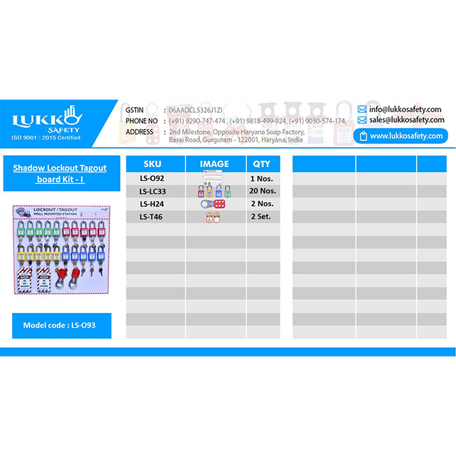 Shadow Lockout Tagout board with material (20 OSHA lock + 2 Hasp + Tag set)