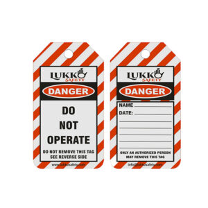 Do not operate Lockout Tag “Only AUTHORIZED person may remove” Size : Length 142mm, width 78mm, diameter of eyelet 7.6mm